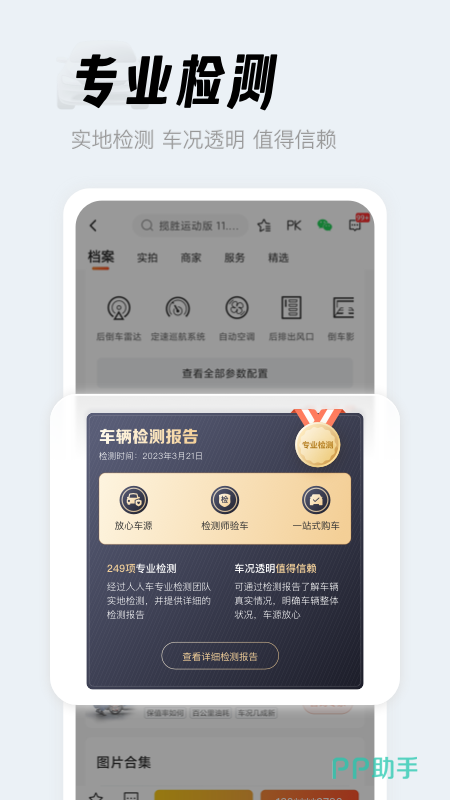 人人车二手车这个软件作为比较权威的二手车交易平台,能够为用户提供更多海量的车源信息选择,所以各位用户们能够在这个软件中通过输入自己感兴趣的车型型号以及相应的车辆价值,就能快速地找到不同的车源信息,同时软件中有比较专业的车辆检测报告信息能够支持用户进行在线内容的查看,方便大家更客观地了解车辆的一些车况信息。
