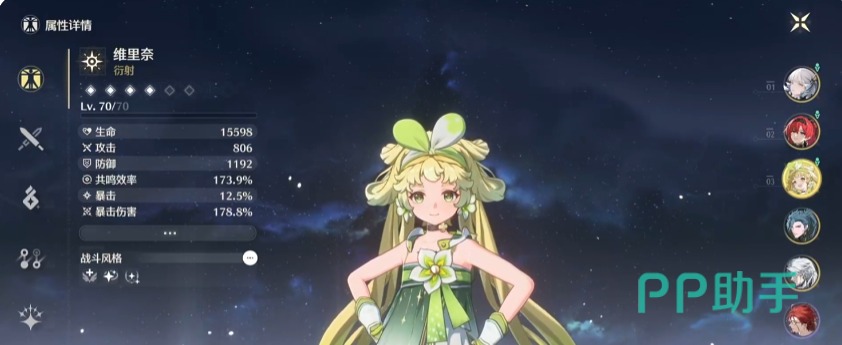 维里奈也是不错的可以去练的一个共鸣者,这是一个常驻的五星,虽然是一个辅助角色,但是获取来说是比较简单的,而且养成的难度比较低,主要就是堆叠她的生命值,最重要的是她能够给队友提供强大的治疗效果,而且对于整队的伤害还可以得到提升,辅助能力很强势,队伍中有这样一个角色,整体生存和输出都提升不少。