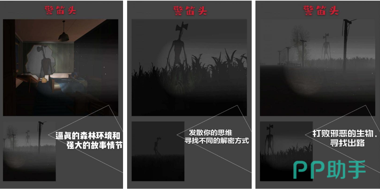 警笛头是款恐怖氛围浓郁的单机独立冒险游戏,灰暗的美术风格将游戏气氛衬托的更加惊悚,真实的森林环境和恐怖的警笛头也令玩家不寒而栗,各种各样的解谜方式等待着聪明的玩家寻找,收集各种辅助道具就可以暂时克制恐怖的收集各种。这款惊悚无比的单机游戏具备开放的地图设计,恐怖的场景和音效也足以让大家不寒而栗。