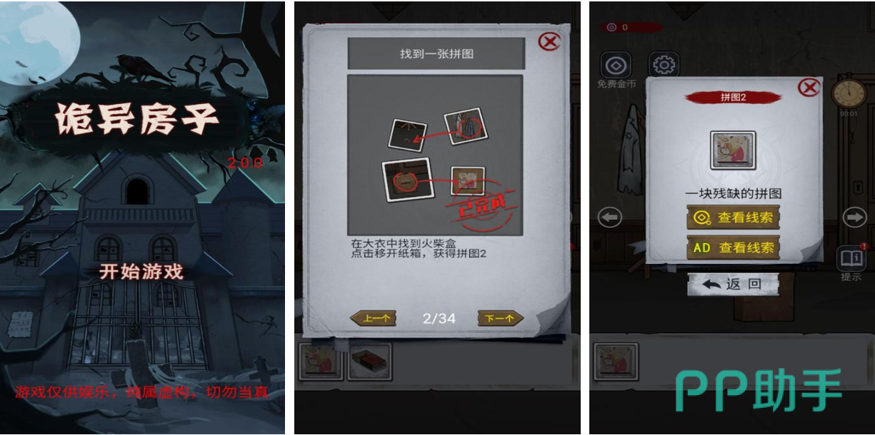 诡异房子这款内容超级诡异的解谜逃生类游戏值得一玩,精彩的剧情与环环相扣的机关设计令玩家拍案叫绝,优秀且诡异的美术让众多解谜游戏粉丝乐在其中,游戏场景设计古朴且充满了各种细节,几乎所有的物品都可以让玩家点击互动,寻找道具线索并离开诡异的房子就是玩家的唯一任务,快下载这款内容超诡异的解谜逃生游戏试试吧。