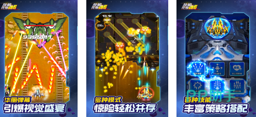 这里的战机能够自由的拼接而成,拼装更加炫酷的战机出战,这些战机不仅拥有好看的形象,而且威力也是不容小看。满屏的敌人子弹向你飞来,你需要依靠自己超高的手速躲开所有子弹,并且射出光线进行反击,最终凭借自己高超的战机操作水平来赢下所有战斗。