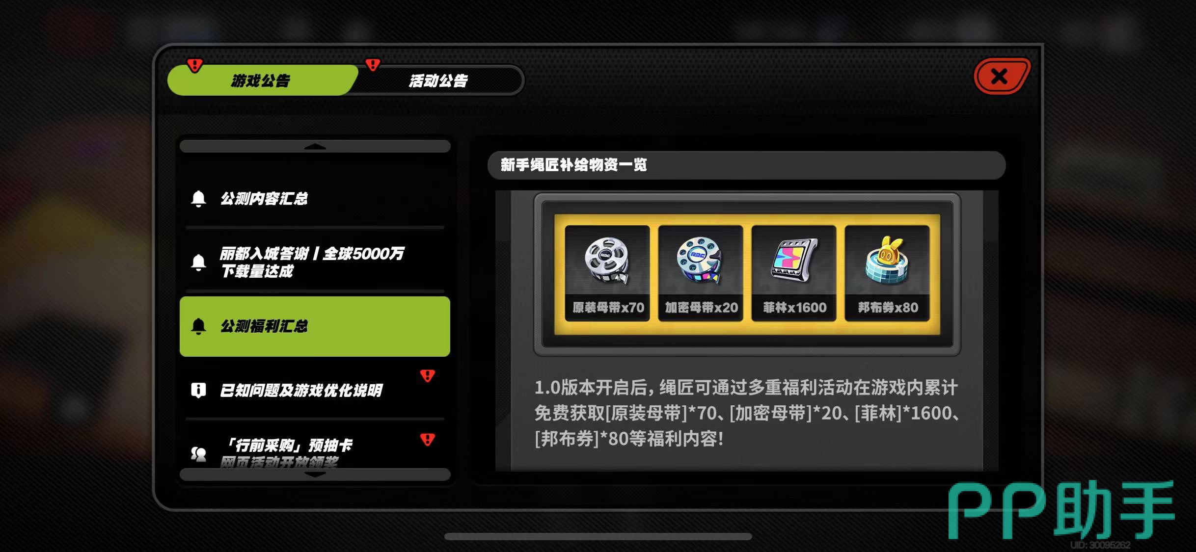 领取已有的奖励之后,如果你还想知道官方此刻还有哪些福利活动存在。点击邮件界面左上角红色返回按钮,即可回到上一界面;此时点击第三个按钮“公告”即可打开“游戏公告”与“活动公告 ”弹出界面,在下方有“公测福利汇总”,点击后右侧即显示当前所有福利活动内容。因为活动比较多,信息量也比较大,向上滑动可以翻动信息逐一浏览具体内容。