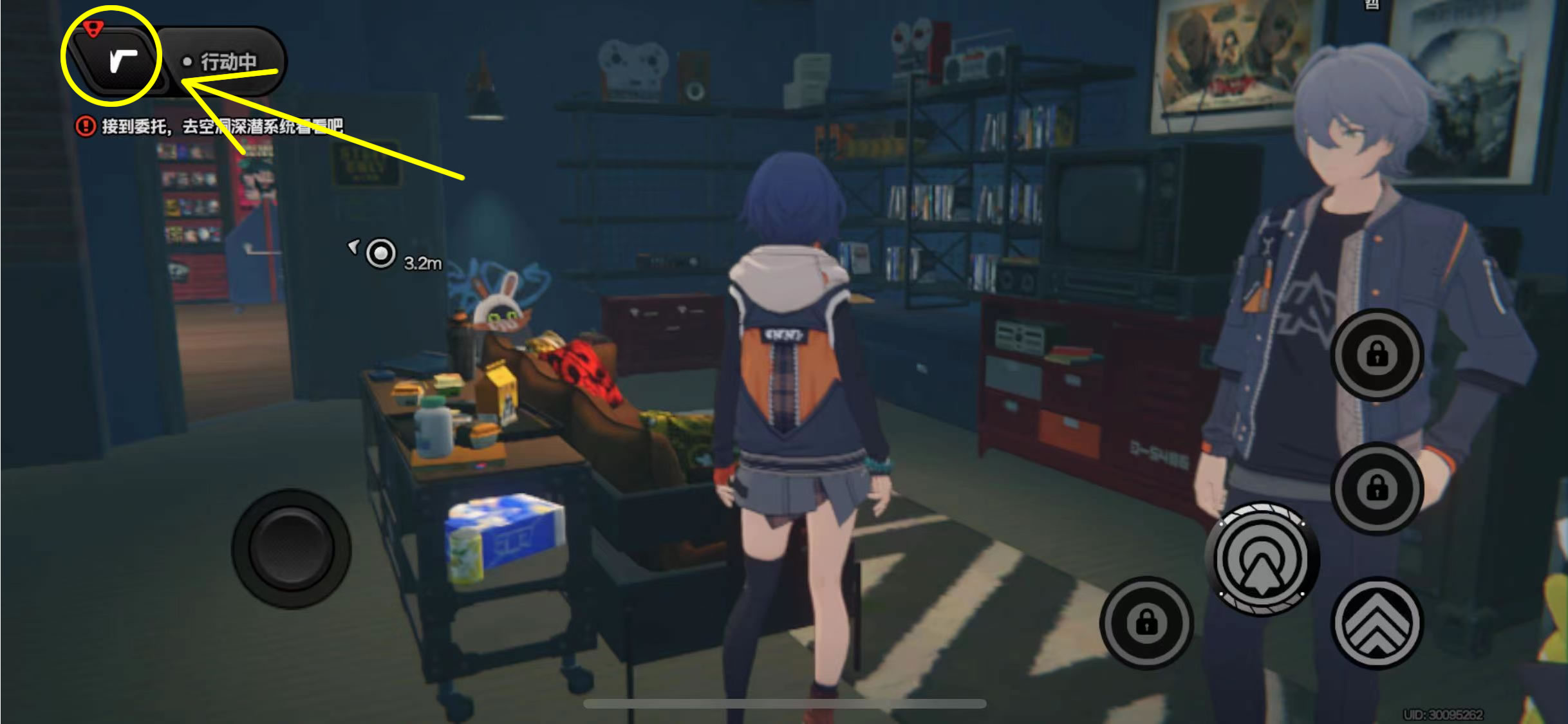 首先我们需要先进入非战斗状态。就是在刚刚进入游戏时,其实是需要先参加一段新手战斗的教学流程的,这个时候的界面仅有战斗相关的信息,此时无法查看设置与其他功能按钮。完成新手之后角色就进入自由移动状态,点击画面左上角第一个按钮,就可以打开“更多功能”界面。