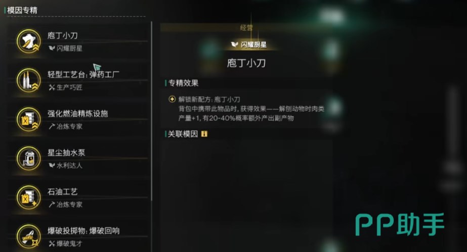 庖丁小刀,背包里有这个的时候在解刨动物时肉类产量加1,有20%-40%几率获得副产物鹿奶。