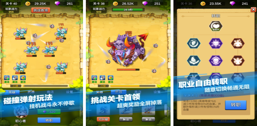 单机刷刷刷是一个不需要联网的割草游戏,在这个游戏里,玩家只需要给角色选择装备就可以,人物在游戏里会自动挂机战斗,每一关都会有很多小兵和boss,玩家需要借助这些装备的力量去对抗怪物,为了可以让玩家感受到游戏里的自由度,除了这种对战玩法之外,玩家还可以随意切换角色的职业,这样在对战的时候能有更加优秀的表现。