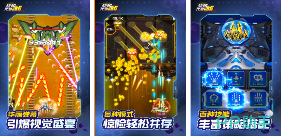 飞机飞行射击的游戏也是在街机手游里经常会采用的一种模式,战机:代号666就给玩家展现出了一个非常浩瀚的宇宙世界,在这里可以操控战斗机,选择多种不同的模式进行挑战,但不管哪一种模式,飞机的操控都是非常简单的,飞机可以自动射击,玩家只需要使用手指滑动屏幕控制飞机的方向就可以。