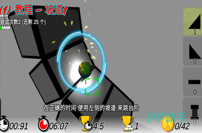 球道种类众多,玩家和你使用3种不同方向的木块以及螺丝打造平缓和斜坡等多种球道,尝试次数以及单个木板使用的快速有限。在操作上,玩家操控小球使用左右两侧的坡道完成跳台阶以及其他指令,保证小球的安全行驶到达铁桶。球道数量高达42个,玩家利用求道的可转变性合理避开的危险,偶尔也可以使用木板等道具。