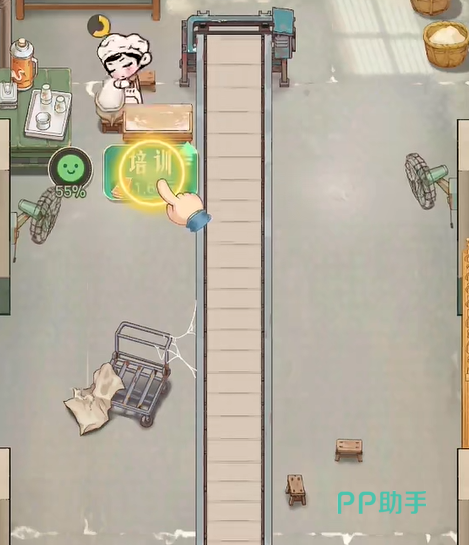 在早点摊打工期间,玩家们只要将早点摊提升到一定等级,便可以进入下一阶段的任务。这个时候游戏会解锁正式的关卡。我们的第一关是早点的作坊。一开始玩家们也不知道该做什么,这个时候我们可以给作坊里面的员工进行培训。在培训之后作坊的生产力就会提升。在出去后玩家们可以获得值钱的早点摊老板娘的人物,这个人物是可以升级的,升级越多,能够解锁的能力也就越多。