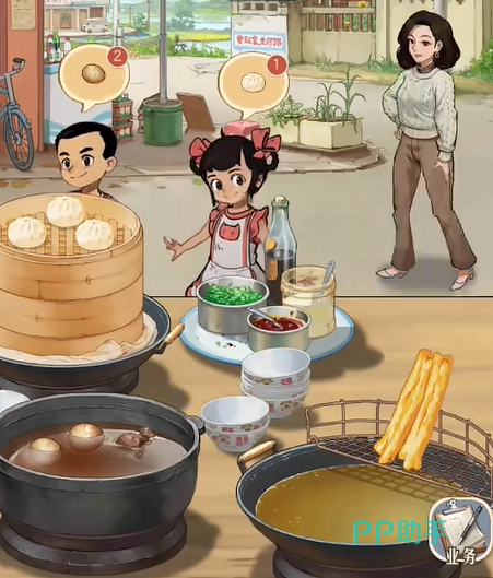 之后的任务还是以出售早点为主,目前我们的早点是油条和包子,玩家们需要尽快进行出售才行。在出售到一定程度,便会解锁人才委托,我们在早点摊上可以将刚刚获得的老板娘放上去,这样便会自动进行早点的出售了。