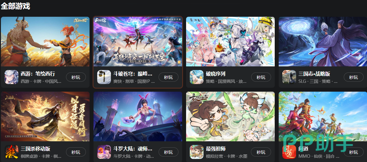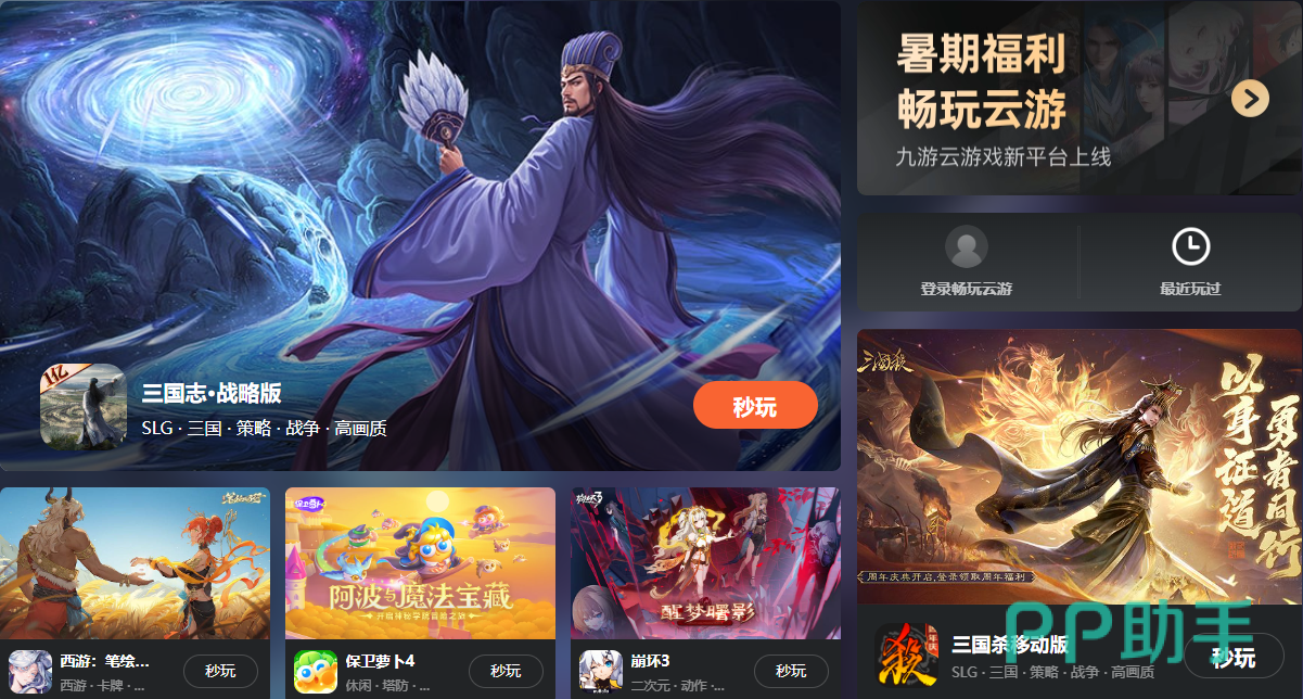 另外就是在九游平台当里,游戏数量和类型都是十分丰富的,数量繁多的游戏都是可以畅玩的,还有很多时下非常火爆的游戏均是可以体验的,比如大家比较喜欢的《三国志·战略版》,《西游:笔绘西行》,《斗罗大陆:魂师对决》,《问道》,《三国杀移动版》,《最强祖师》,《斗破苍穹:巅峰对决》等等游戏都是点开即玩的。