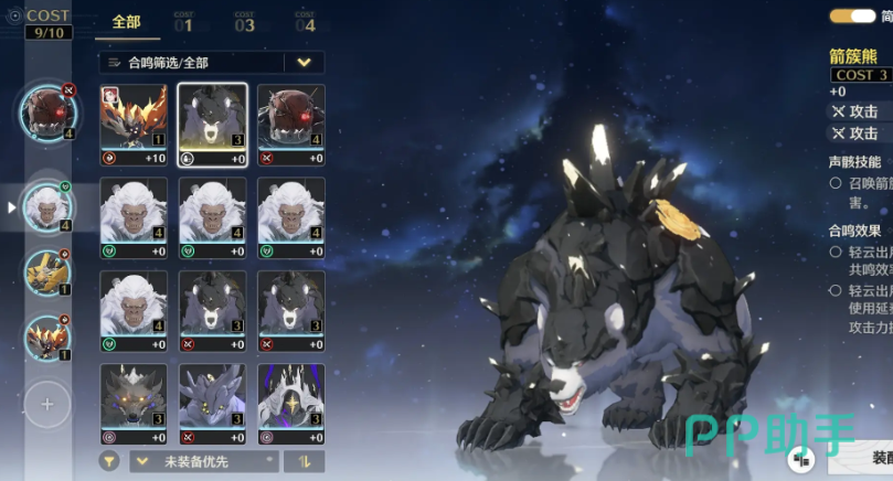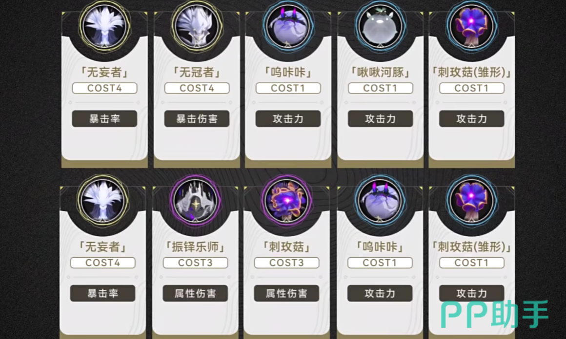 当游戏度过了过渡期,玩家可以采用词条之中有暴击或爆伤的金色声骸,例如紫鸟和乐师, 在暗属性的搭配上面,玩家可以更多的选择无冠者这个词条,无冠者这个声骸不仅能够增加暴击率,还能够增加暴击伤害,可以说是后期一个比较强的伤害搭配了,在coaster等级分配方面玩家可以选择4-3-3-1的搭配,也就是使用无冠者四件套, 紫鸟三件套和乐师三件套,最后一个搭配哀声鸟即可。