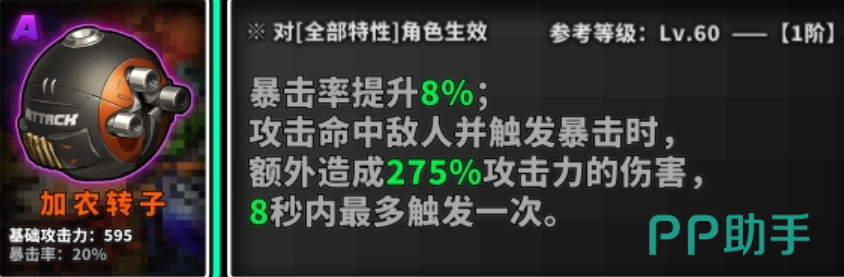 可能有部分玩家在体验艾莲这个角色的时候,还不能够获得深海访客,此时玩家可以选择加农转子。毕竟加农转子也能够有效的提供暴击率,并且在暴击敌人的时候也会造成额外的攻击伤害。其实加农转子主要就是速切增伤,所以艾莲在使用加农转子的时候,可以战场持续性的输出。