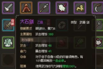 我们得说说它的攻击力,大石剑的攻击力那是相当的高,拿上它,玩家对敌人的伤害就能明显提升。简单来说,就是能让玩家更容易地打败敌人。再来说说暴击。大石剑除了攻击力高,还能增加玩家的暴击率和暴击伤害。这意味着玩家拿着大石剑,不仅打得疼,还有机会打出更高的额外伤害,让敌人在不经意间就败下阵来。