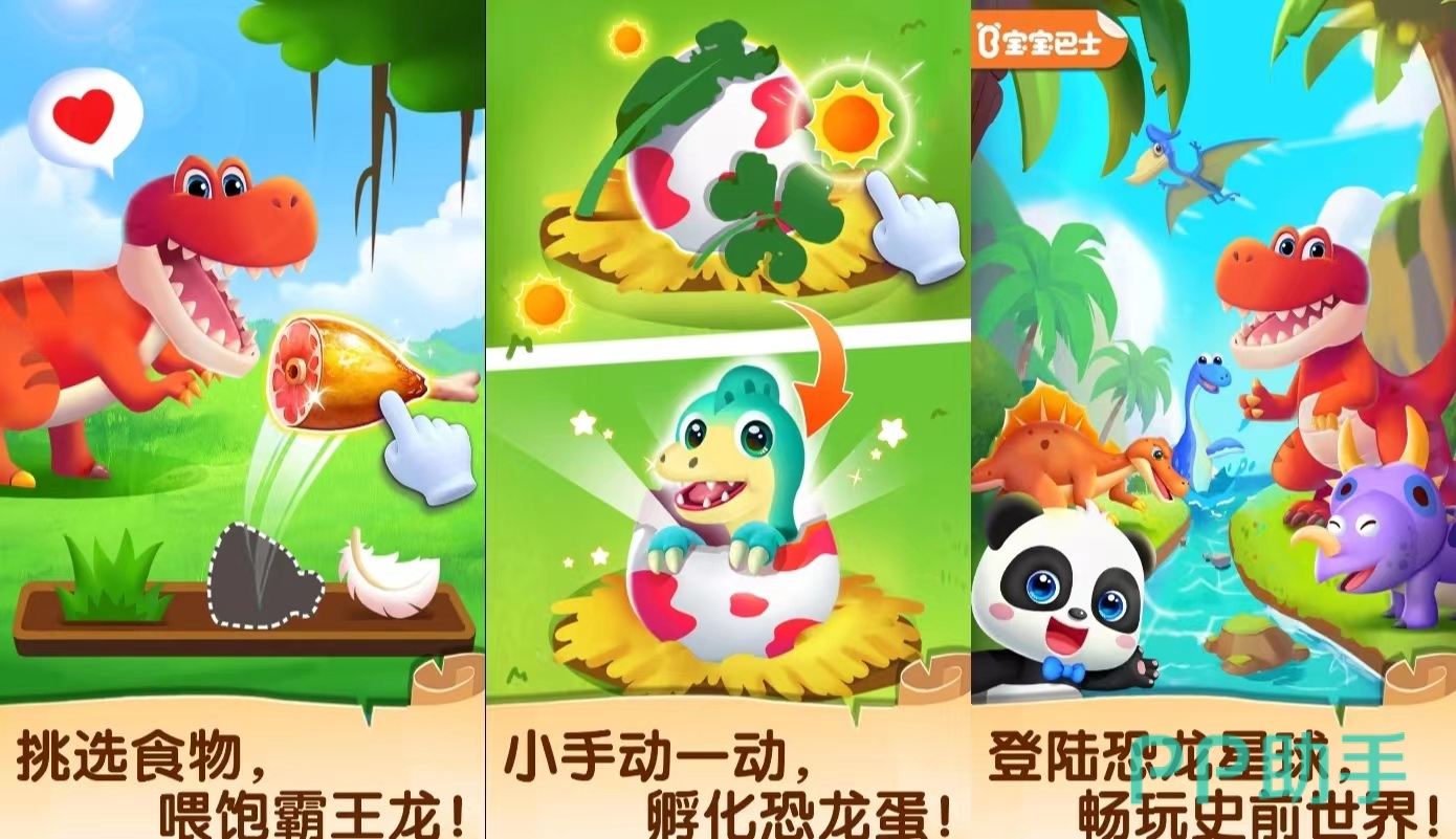 《恐龙王国》游戏里面玩家会看到一个虚拟的侏罗纪公园,会用非常卡通的动画的方式来描述,模拟了恐龙蛋的孵化过程,玩家可以在游戏里面为恐龙寻找食物,为恐龙进行升级来成长。游戏里面的恐龙分为很多种不同的品种,需要组建一支探险小队,游戏中也会详细的描述恐龙的生活技能,恐龙的生活习性和每一种恐龙品种的特征。