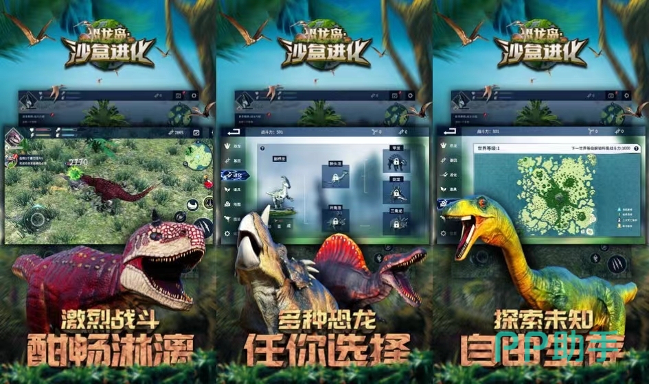 《恐龙岛:沙盒进化》游戏里面模拟了恐龙是怎么样的生活,在游戏中可以扮演恐龙的角色,需要让恐龙进行喝水,吃食物来维持正常的生命体征。游戏的场景中是一个茂密的森林,游戏里面的恐龙分为两种类型,有食肉恐龙,还有食草恐龙两种。不同的恐龙在游戏中会有不同的名称和类型。可以选择不同的道具来为共恐龙提升战斗力,在这里玩家可以体验到恐龙的生活习性。