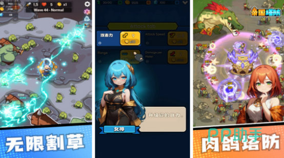 这款塔防割草游戏又加入了独特的抽卡元素,只不过抽卡模式并没有收费情况,全部都是免费抽卡。而大部分塔防游戏都以放置为元素,此手游也是如此。需要在领地当中建设防御塔,保护领土,避免受到邪恶势力的攻击。在激战时会发现战斗场景相当华丽,精致的特效完美展现出来,在战斗时玩家需要不断调整防御策略,这样才能应对突发状况也能保为领土。