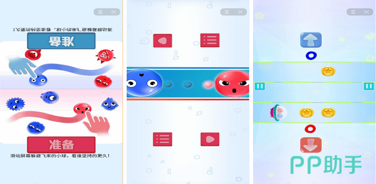 双人大比拼也是个不用连接网络的神奇单机双人竞技类作品,这款APP包含着许多千奇百怪的双人竞技玩法,画面表现十分简约给人一目了然的视觉效果,红蓝配色以及干净整洁的背景也带来了视觉享受,操作机制尤为简单足以让手残党玩家也享受对战游戏的乐趣,前期的教学系统也是很细腻的会让大家快速掌握游戏规则。