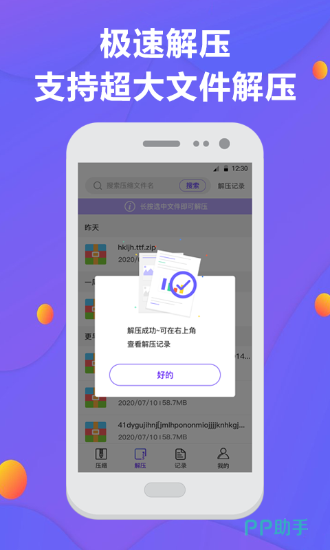 这款解压缩文件包括多样化的解压缩内容,它包括了视频解压缩,文档解压缩以及我们的音频文件解压缩等等,只要是手机上的数据文件,这款APP里都能够快速的进行解压缩,帮助大家实现有效的文件整理和手机内存整理。