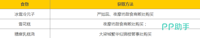 比如说冰雪冷元子可以到严如蕊以及甜食贩子进行购买,同时甜食贩子还可以出售雪花糕,能提升角色的整体生命值,基本上位于夜摩坊,最后一个甜食糖糜乳糕浇,需要到前往大梁城,到繁花似锦的楼管处npc进行购买,价格大致都是很便宜的,就是卖了之后都需要进行一天的刷新。