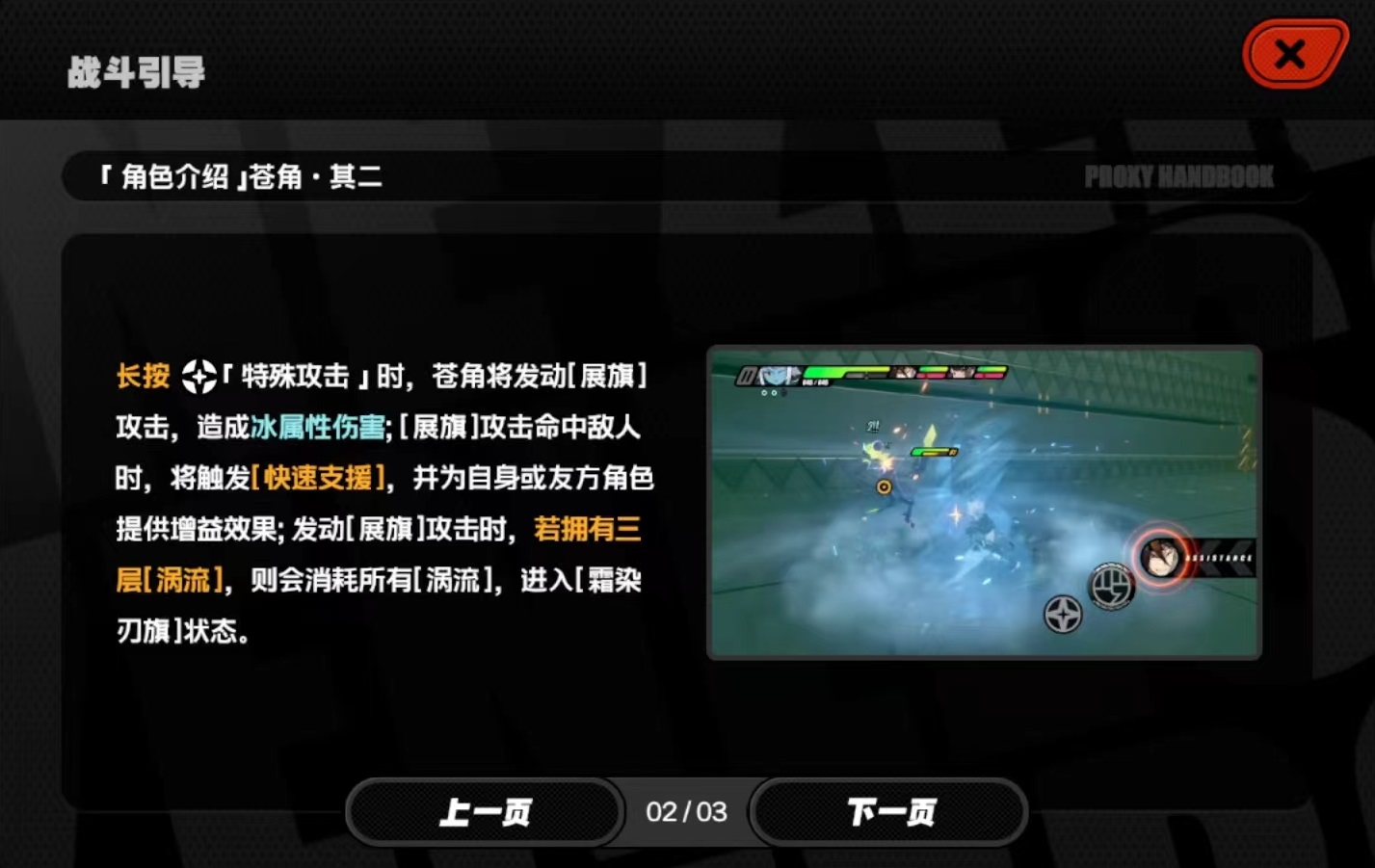 作为冰属性角色,苍角在进行攻击时可以为敌方累积冰属性异常,然后触发冻结并施加寒霜效果,使对方无法行动。同时利用自身的核心技能提高攻击力,其他角色触发快速支援或者是连携技入场时,该增益效果可以传递给对应的角色,并刷新持续时间。简单来说就是可以先使用苍角进行战斗,触发增益以后直接将其他核心输出切换出来,这样就能够享受到攻击提升增益,非常适合辅助一些占场型的输出人物。