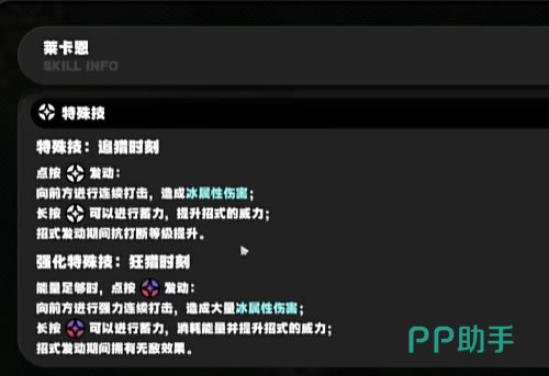 强化特殊技狂猎时刻不仅能造成冰属性的强力伤害,在消耗能量发动技能时,自身还处于无敌状态。这时候敌方的攻击是完全被抵挡下来的,对于一些精英怪或者Boss发动的大招,这一技能能起到完美的防御效果。战斗中完全可以通过切换上场的形式来形成打法套路,实战效果很好。