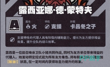 绝区零露西定位介绍,《绝区零》中的露西是一个火系支援角色,属于“卡吕冬之子”阵营,核心技能和额外能力为战斗提供了独特的支持。她的加入不仅能提升队伍的攻击力,还能通过多种方式增加团队的生存能力,是游戏中不可或缺的支援角色之一。