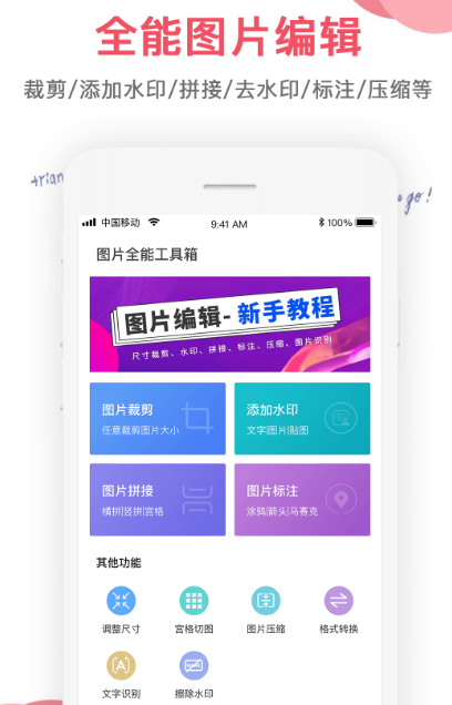 如果用户想要制作图片,通过这款编辑应用可满足更多的需求,其中的主要功能就是给图片添加想要的水印内容,还有拼贴拼接等功能。拼图的时候使用拼接拼贴都是没有问题的,支持图片随意裁剪,还能给任何位置添加水印。想要让自己拥有很好看的图片作品,也可使用这款编辑软件做到。