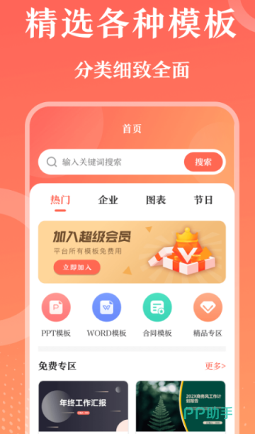 作为一款专门制作ppt的软件,无论是在职场办公中还是在日常生活中,它的使用频率都是非常高的,拥有超多的模板可直接将照片套用,到模板中来制作,能够提高你的工作效率。当然还有很多职场办公中需要的合同模板,涵盖的行业领域也比较广泛,也在不定期的更新模板库,深受广大使用者的好评。