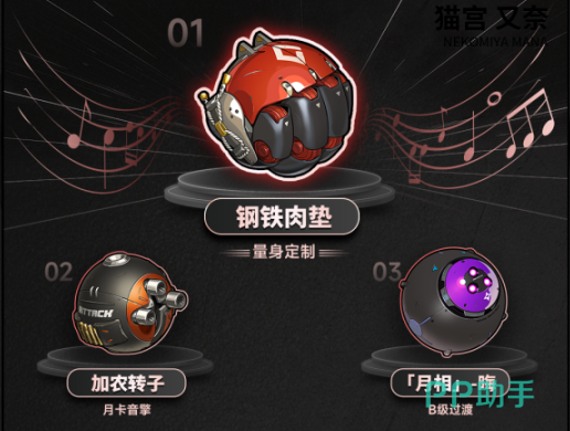 说到装备选择,对于新手玩家来说,一开始可以选择比较实惠的B级装备“月相”来过渡。但要想让猫又发挥出最大的战斗力,还是得靠她的专属武器“钢铁肉垫”。当然如果预算有限,选择“加农转子”作为替代武器也是个不错的选择。前期谁的角色都不会太好,毕竟前期的预算是有限的,那么到了后期大家可以随意去选择了。