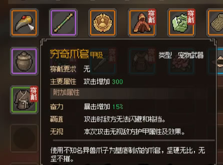 再次来到万兽山庄拜见唐太君,是主角历经艰险磨难,孤身前往大梁城带回了唐太君儿子陆剑南。老太君高兴之下,又赠了一件金色宠物武器穷奇爪套。话说唐家是真有钱啊,出手就是金色装备。