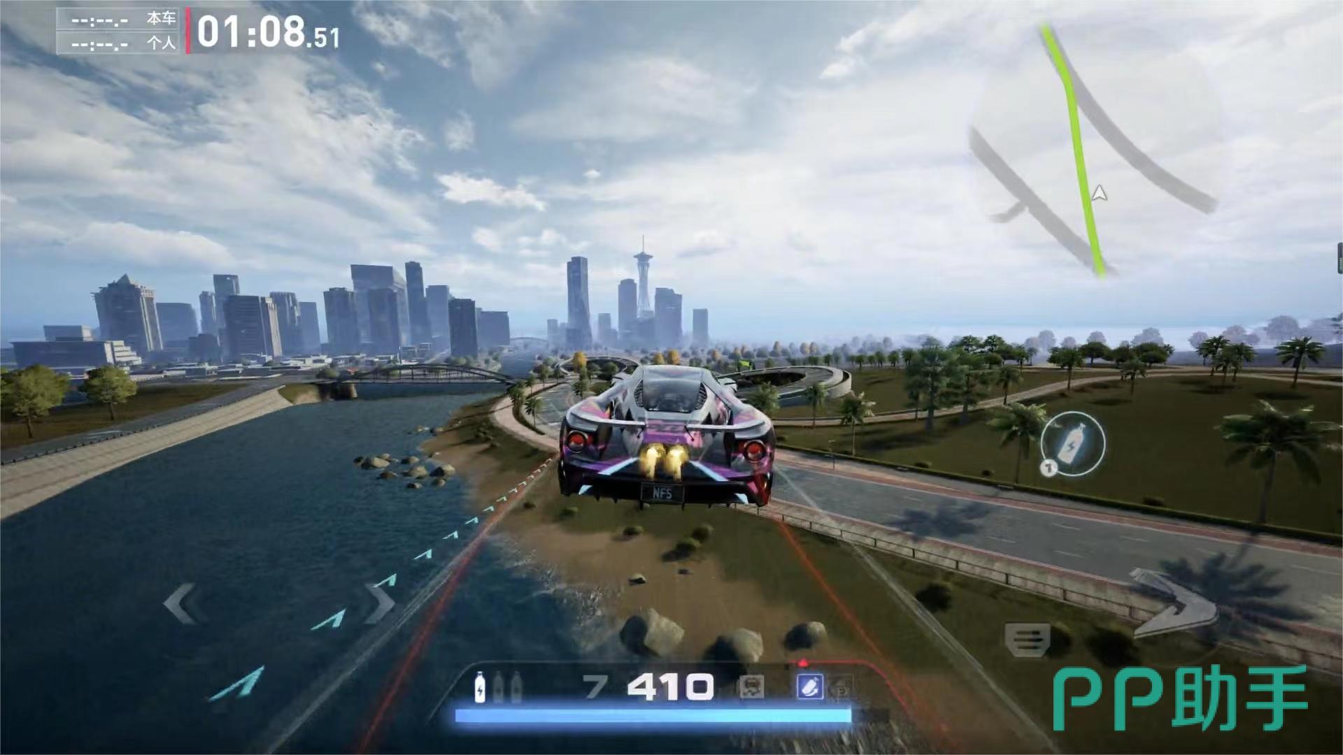 看到这里相信大家就清楚极品飞车集结浅滩速降怎么跑了吧,当然在欣赏美景的同时也不要忘记调整车辆飞行姿态,因为第二处近点究竟藏在对岸的右侧人行道上,落地之后就要着手准备了,顺利完成之后就距离胜利非常接近了。