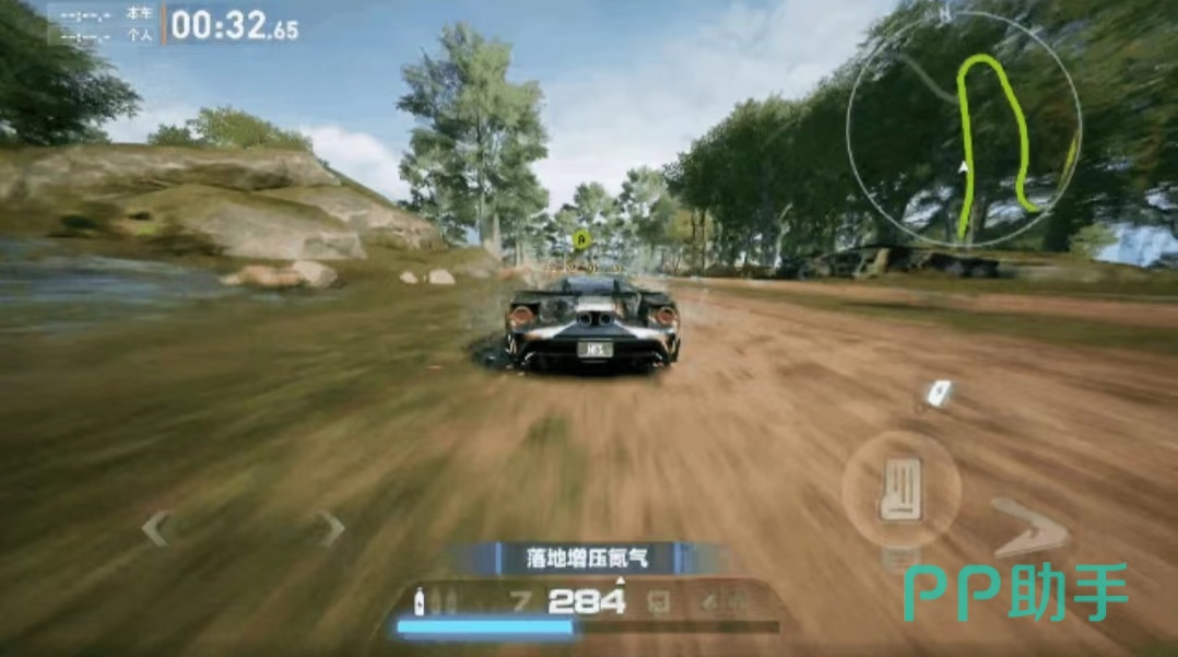 过回头弯之后就来到了第一处近道,此处非常宽敞,所以千万不要错过,随后就是在泥地和水花之间进行冲刺,非常有复杂地形拉力赛的味道。之后路程中有两个半径很大的直角弯道,虽然简单,但是却藏着一些玄机,因为它的半径比较大,所以推荐大家使用惯性漂移技巧来进行过弯,这样可以尽量少的减少速度损失,并且成功补充氮气。同时也因为漂移半径比较大,所以在进入弯道和离开弯道时候要提前选择好路线,并对准弯道中心,这样才是最佳选项。这两个弯道后就会进入一条大直道,这就是展现大家在之前搜集氮气成果的地方,直到旁边有河流,冲刺的时候可以欣赏奔涌的浪花,非常有感觉。