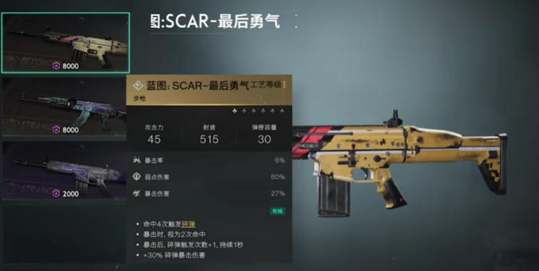 这个武器的配件如果能够把子弹容量扩充,提高命中率之后就能多次触发碎弹效果,再加上本身词条就带有提升30%碎片暴击伤害的属性,前期开荒用伤害还是很高的。