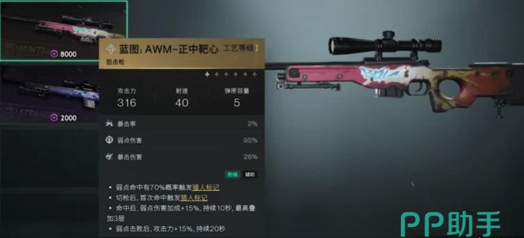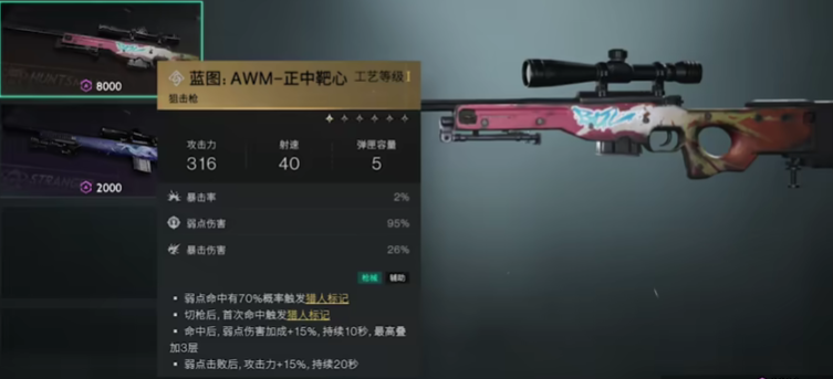 这个比较适合小队作战的小伙伴,而且要还是那种经常玩狙击位的玩家。它的基础攻击力高达316,但是相应的射速实在是太慢了,枪枪都命中威力才大。暴击率很低只有2%,但是弱点伤害达到了95%,暴击伤害是有26%的。每次弱点命中还可以触发猎人标记呢,弱点伤害继续提升15%,持续10秒,最高可以叠加到3层。要是弱点击败了,攻击力还会提升15%,属于能打高额伤害的武器。