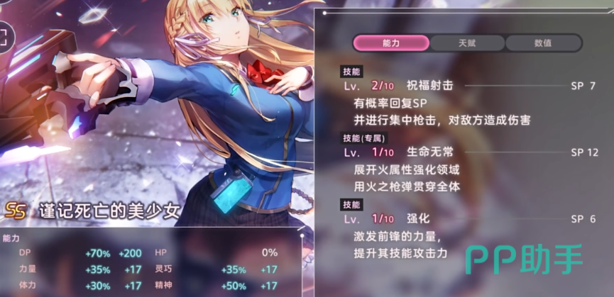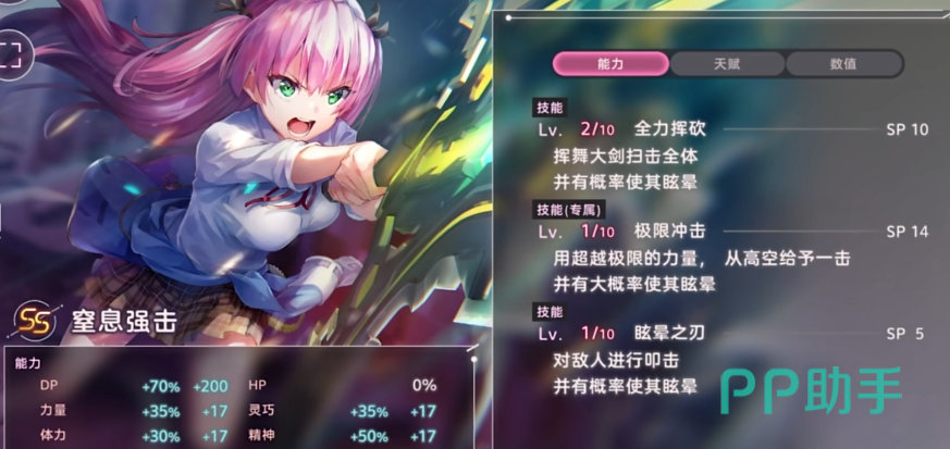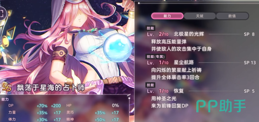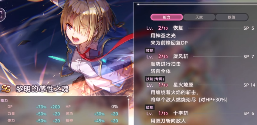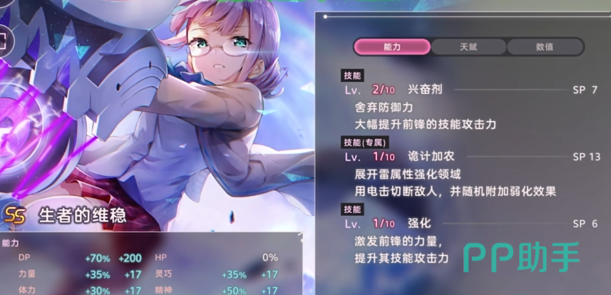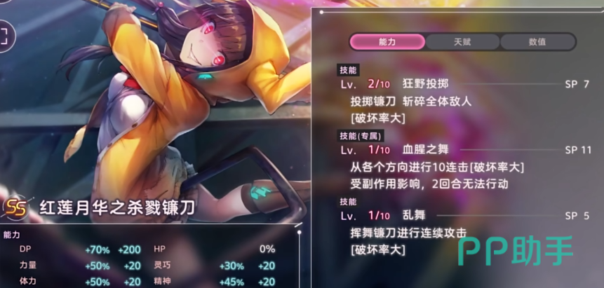 破盾者,游戏里有血条HP和护盾DP,先将DP打空才能对HP造成伤害,而游戏里的很多回复手段是针对DP,HP削减则不容易回复。破盾者有针对DP的高伤害技能。作为伤害类的角色,由希的伤害倍率偏低,大招释放后有2回合无法行动,在恢复DP手段较多的情况下,作为破盾者却无法随时待命就很影响输出节奏了,所以不推荐选她。