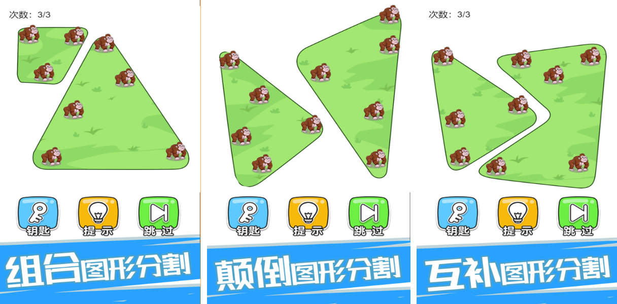 这款脑洞大开的休闲解谜类单机游戏跟大猩猩相关,场景中存在许多争强好斗的大猩猩,你的任务就是手指划线切割土地将大猩猩分开,游戏里每个关卡的地形都完全不同给人带来十足的新鲜感,难度也是循序渐进会让玩家的脑洞一点点得到锻炼,遇到超高难度的关卡模式还可以直接跳过,休闲解压的游戏环境和滑稽的画风都是本作的特色。