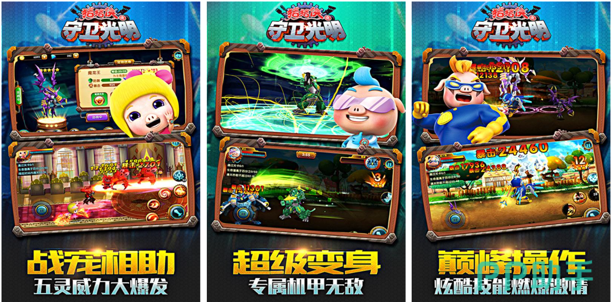 猪猪侠百变英雄是款经过了猪猪侠IP授权纯单机动作闯关游戏,本作中的主角、机甲和背景塑造都跟猪猪侠动画片相关,五位帅气的小猪猪战士轮番上阵陪你一起度过难关,召唤并操控机甲战士与邪恶怪物战斗的过程也刺激爽快,萌系卡通的美术与猪猪侠的主题相得益彰,你也化身小猪猪进行横版闯关冒险吧。