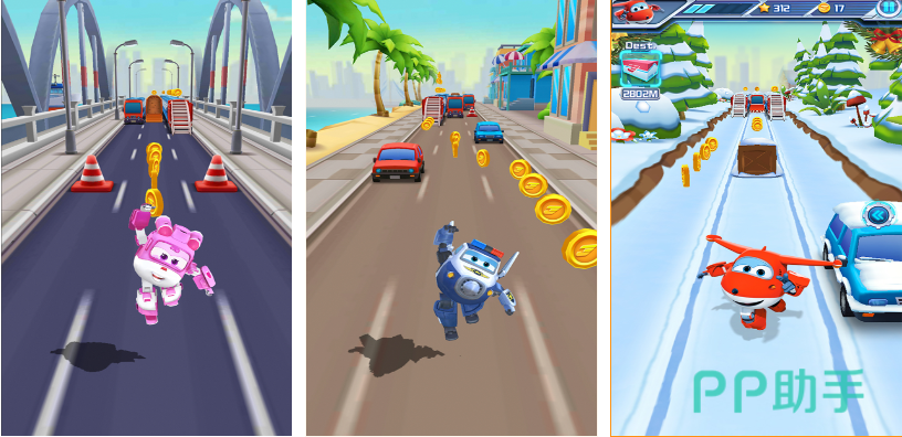 本作是款猎奇新颖的漫改类3D跑酷作品,玩家可操控各种可爱的拟人小飞机进行跑酷闯关,关卡场景随机切换给跑酷游戏粉丝带来超级新鲜的感觉,与超级飞侠动画片一脉相承的音画表现也是一大特色,众多帅气小飞机都拥有不同的跑酷技能任你使用,列位超级飞侠动画片的资深爱好者试试这款酷跑类作品吧。