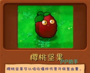 樱桃炸弹跟坚果合体之后,就变成了辅助植物,它可以吸收爆炸伤害,同时还能回复血量。