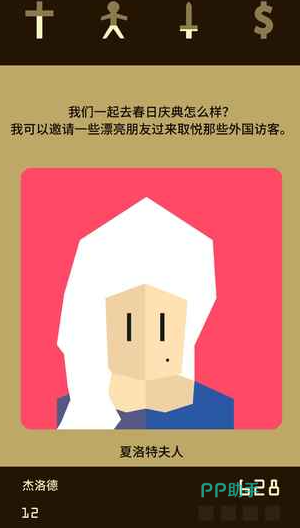 角色卡牌设计得既独特又带点小幽默,玩起来轻松不累眼,文字策略玩法也简单易懂,四大派系的图标一看就明白,选择起来毫不费力。每次面对手下人的请求,大家都要左右思量,滑动卡片做出决定。这一选直接关乎到王国的命运,哪个指标掉到零了,我们的王位可就坐不稳了,要想尽办法延长统治时间。游戏里的每个选择都不是孤立的,今天做的决定可能马上就能看到效果,也可能要等到下辈子,甚至下下辈子才显现出来。