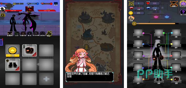 身为一名火柴人,玩家完成武器的合成以及对任务目标展开追捕。在武器合成方面,玩家可选择地图上的不同指标进行放置合成,并且配备各种盔甲和腰带。在追捕的形象上,玩家还需要为火柴人配备光环头盔以及各种护肩披风,它们关系着火柴人追捕的速度。
