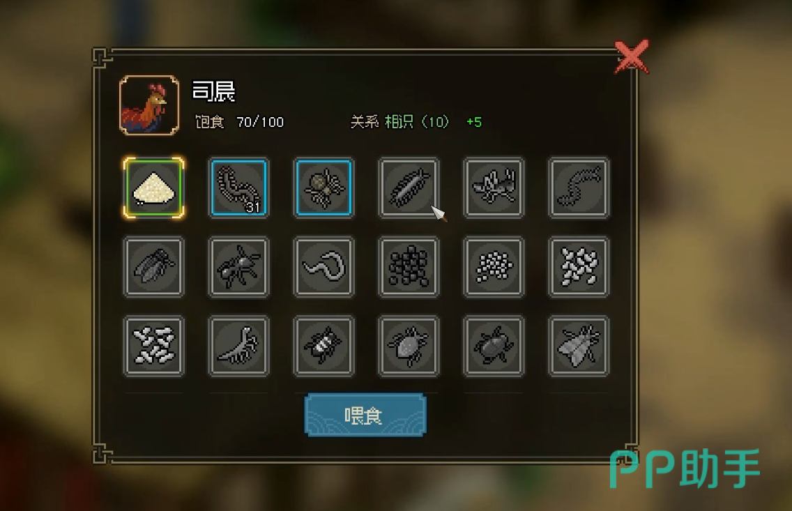 给它为啥豆类、稻米或虫子等可以提升关系,等到关系达到知己后就可以进行领养了,如果觉得还是不够强,可以先不以五连胜为目标,参与一两场斗鸡比赛,刷它的经验值,多参与几场即可提高鸡哥的攻击力。