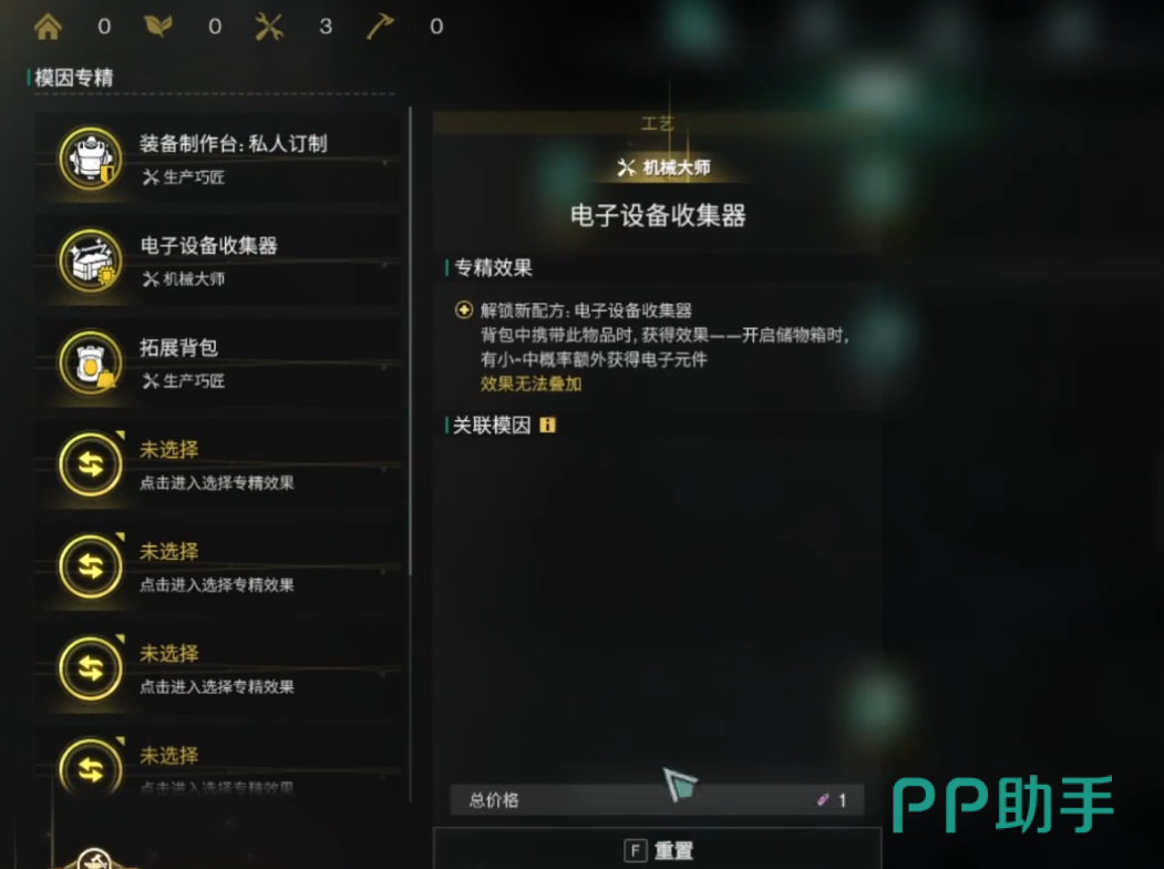 拆解台,有精细拆解和电子回收,这两个要点出来,也是资源型的专精
