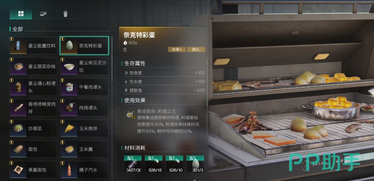 奈克特彩蛋,在集成厨房制作使用后可以随机得到1种聚落宝箱奖励,可以开到不少材料。