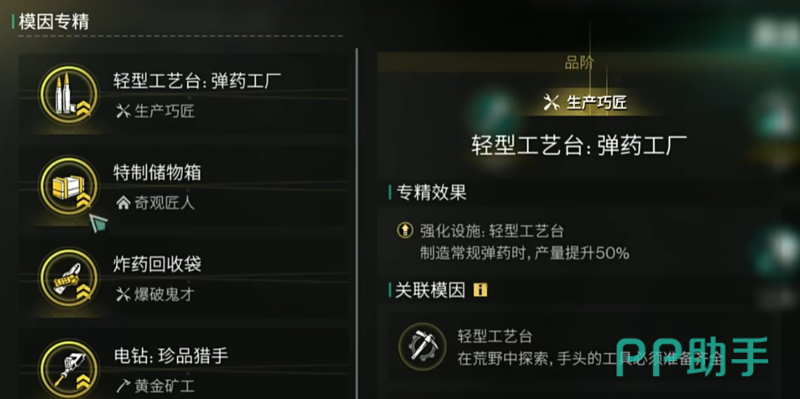 轻型工艺台:护甲克星,制作ap弹产量提升30%制造所需时间减少50%;pvp中T0级的模因,pve的话则没有那么多资源做ap弹。