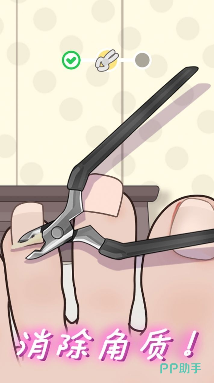 《修脚解压模拟》你在闹市区开了一家时尚美甲店,要根据客人的要求对指甲进行修理,假如遇到客人的脚部受伤,你要制定一系列的治疗手段,对客人的伤口进行消毒包扎,甚至上手进行手术等,而且这还不算完,你还要负责客人的善后工作,通过游戏我们还能够学习一些足部护理知识。