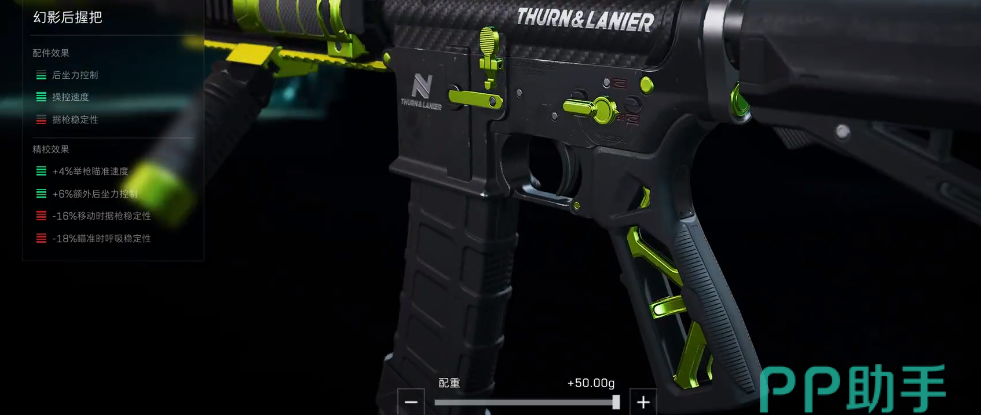 配件方面枪口选择精密战术消音器,弥补射程劣势同时抑制后座力和枪声。枪管选择精英重枪管组合,可以提升射程、减少后座力。右导轨选择PEQ-2红色激光镭指,可以加操控速度。前握把选择X25u斜握把,抑制后座力,增加射击精度。贴片方面以替身操控速度为主,选择按照大家拥有得来就行。 弹匣选择45发弹匣,配备一个快拔枪套。