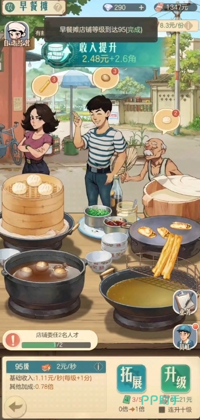 想要让自身的等级快速提升,玩家可以通过以下几种途径去实现,首先第一种就是解锁并且升级自己的店铺,在游戏前期我们只会解锁一个早餐铺,而随着早餐铺等级的提升,玩家是可以解锁更多店铺的,例如饭店、作坊、商铺等等。我们在接待不同的客人之后,也能获取大量的现金以及经验,这些经验就是有助于店铺的升级。