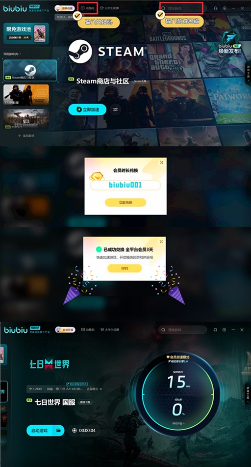 删除人物角色目前做不到,可玩家可以通过以上的方法重新来创建人物角色。但在玩这款游戏时,有些玩家会遇到网络卡顿等问题,不如选择使用加速器。例如新手用户在点击以上链接,完成注册之后,可以享受24小时免费加速时长。使用兑换码【biubiu001】还可以在原本的基础上又免费三天时间叠加在一起,总共是免费96小时。
