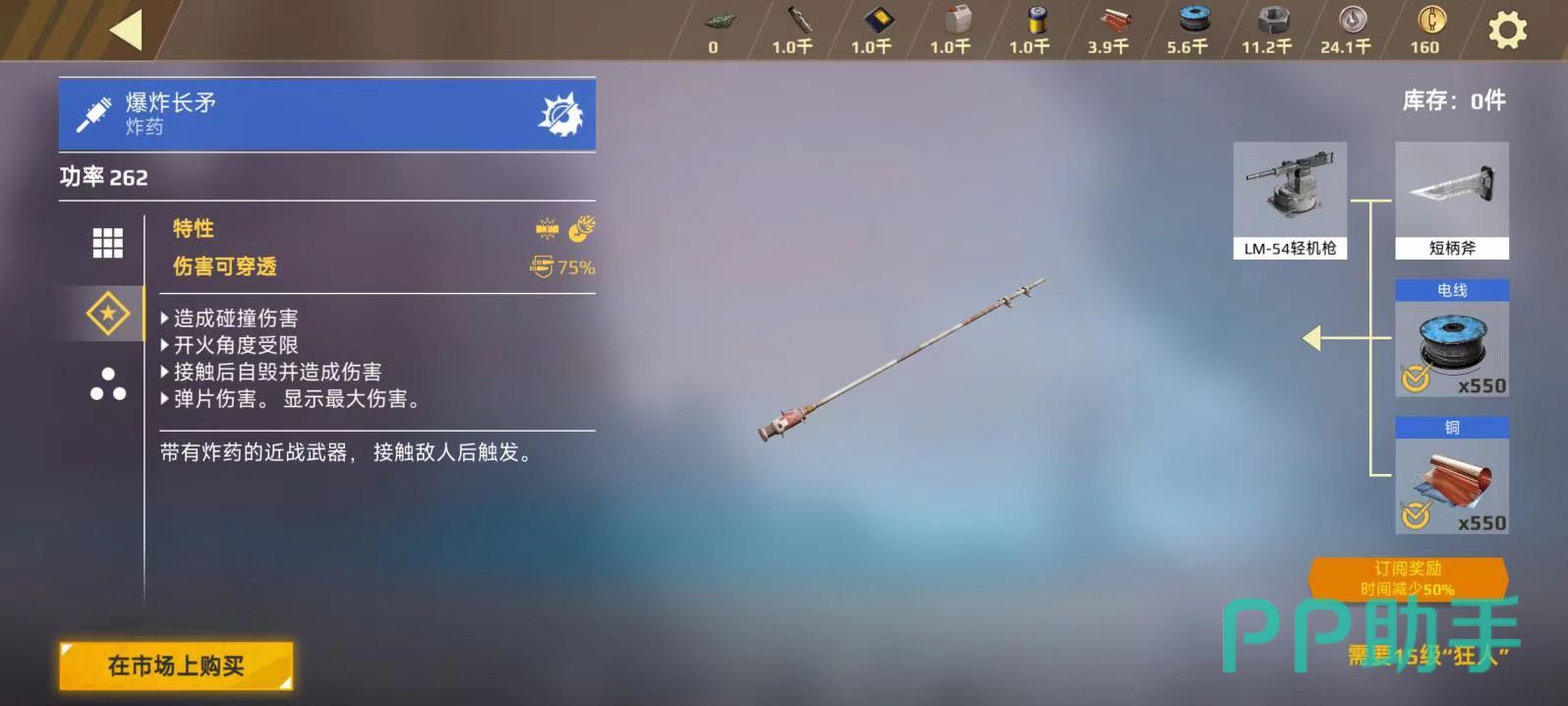 爆破长矛指的是一类武器的统称,在创世战车这款游戏中,近战武器没有射程限制,却拥有罕见的高攻击力,因为没有了射程制约,所以在配装思路方面往往倾向于高速轻型化设计,利用高耐久度对敌人实施步步紧逼。近战武器又分为两大类,爆破长矛是属于一次性的类型,另外一类是可以使用多次使用的标准近战武器。